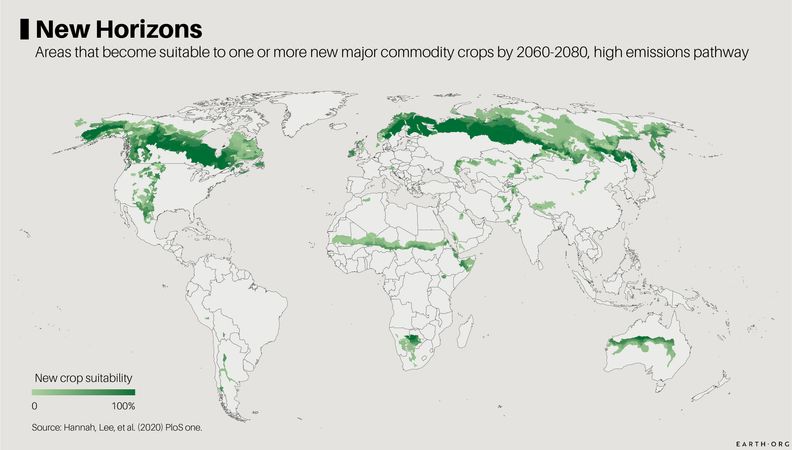Roztopí sa permafrost na severnej pologule = uvoľnia sa nové predtým zamrznuté územia na severe = zvýši množstvo polí = zvýši sa množstvo plodín